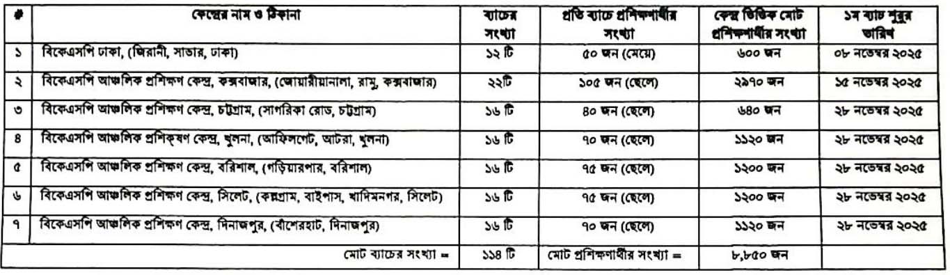 প্রশিক্ষণে অংশগ্রহণে আগ্রহী প্রার্থীরা বিকেএসপির এই bkspds.gov.bd ওয়েবসাইটে গিয়ে আবেদন করতে পারবেন। এছাড়া প্রশিক্ষণ সম্পর্কে বিস্তারিত জানতে এখানে ক্লিক করুন।